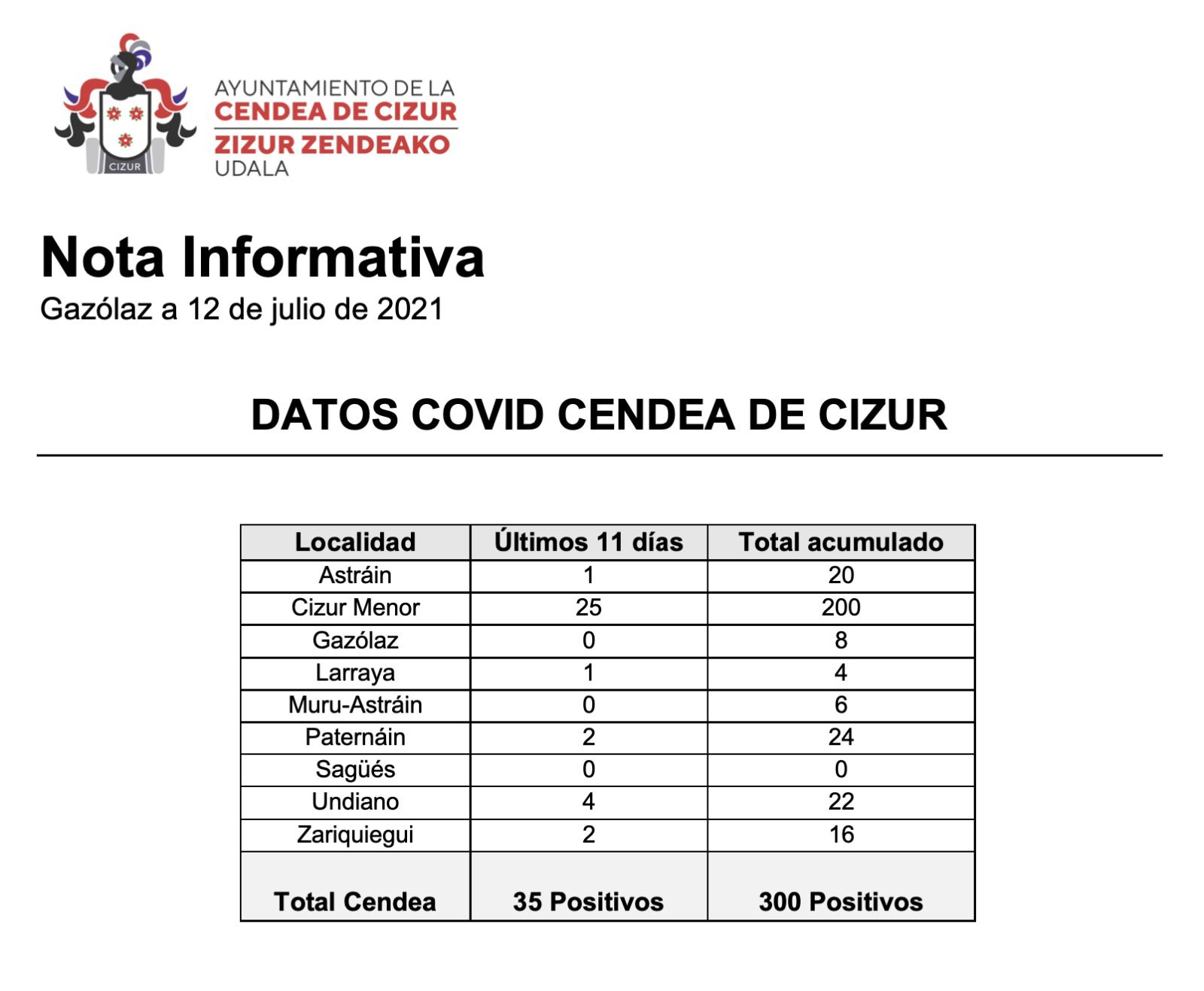 / Datos Covid Cendea de Cizur